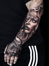 From the very beginning until now, I think I’ve explored almost every style tattooing has to offer. I believe that the more diverse knowledge we have, the more complete and versatile we become as artists. So I sought to train and experiment with everything, but of course, along the way, we start gravitating toward what we feel most connected to. For a long, long time, I was focused on realism, studying the techniques intensely. But at some point, I realized that what bothered me was the lack of creativity, the limited room for exploration, design, and freedom. Nowadays, I enjoy working with color more because it gives me the freedom to create what I want, the way I want—without too many rules, obstacles, or barriers. After many years of experience, I’ve reached a point where clients seek me out specifically for my work. Through color, with a realistic touch but not strictly labeled as realism, I can deliver something unique to my clients—and that’s what makes me happiest today.